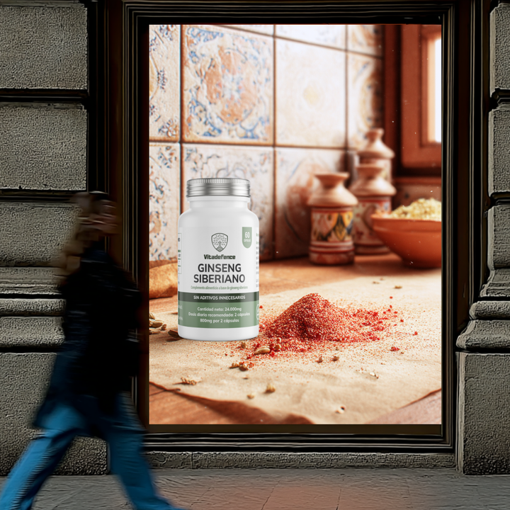 One free hand because the three-year-old is scaling the sofa again, the other gripping a marker that will not write on the whiteboard. That is usually when I prise open the little white pot of Vitadefence Siberian Ginseng. Each capsule holds 400 mg of plain root powder, no fillers, no maize starch, nothing a vegan would need to look up. It is bottled in the UK, under GMP standards, so I am happy to give it space in the same drawer as the plasters and gold-star stickers.